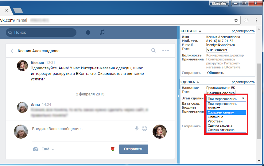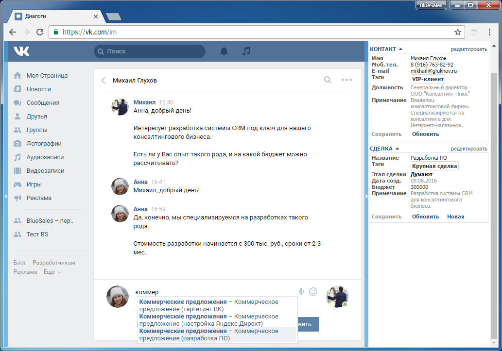 Прочитайте статью про интеграцию amoCRM и ВКонтакте